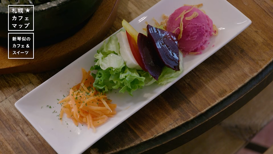 鮮やかなビーツを使ったサラダには、特製スパイスを添えて。