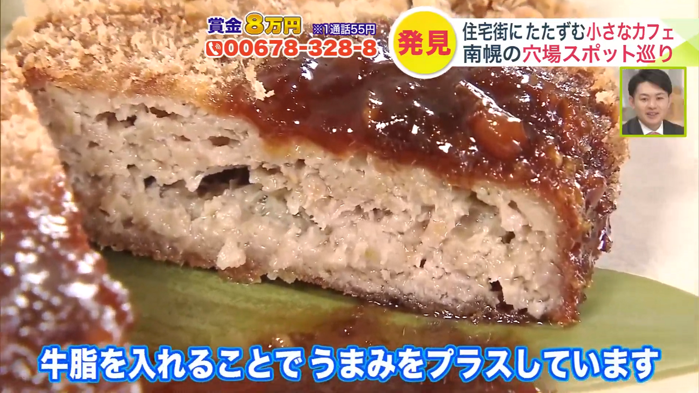 ジューシーに仕上げているポイントは、 豚肉と牛肉を独自でブレンドし、さらに牛脂を入れることでうま味をプラスしていること。「コクや甘みがあります。 このみずみずしさは牛脂のおかげなんですね」(遠藤リポーター)