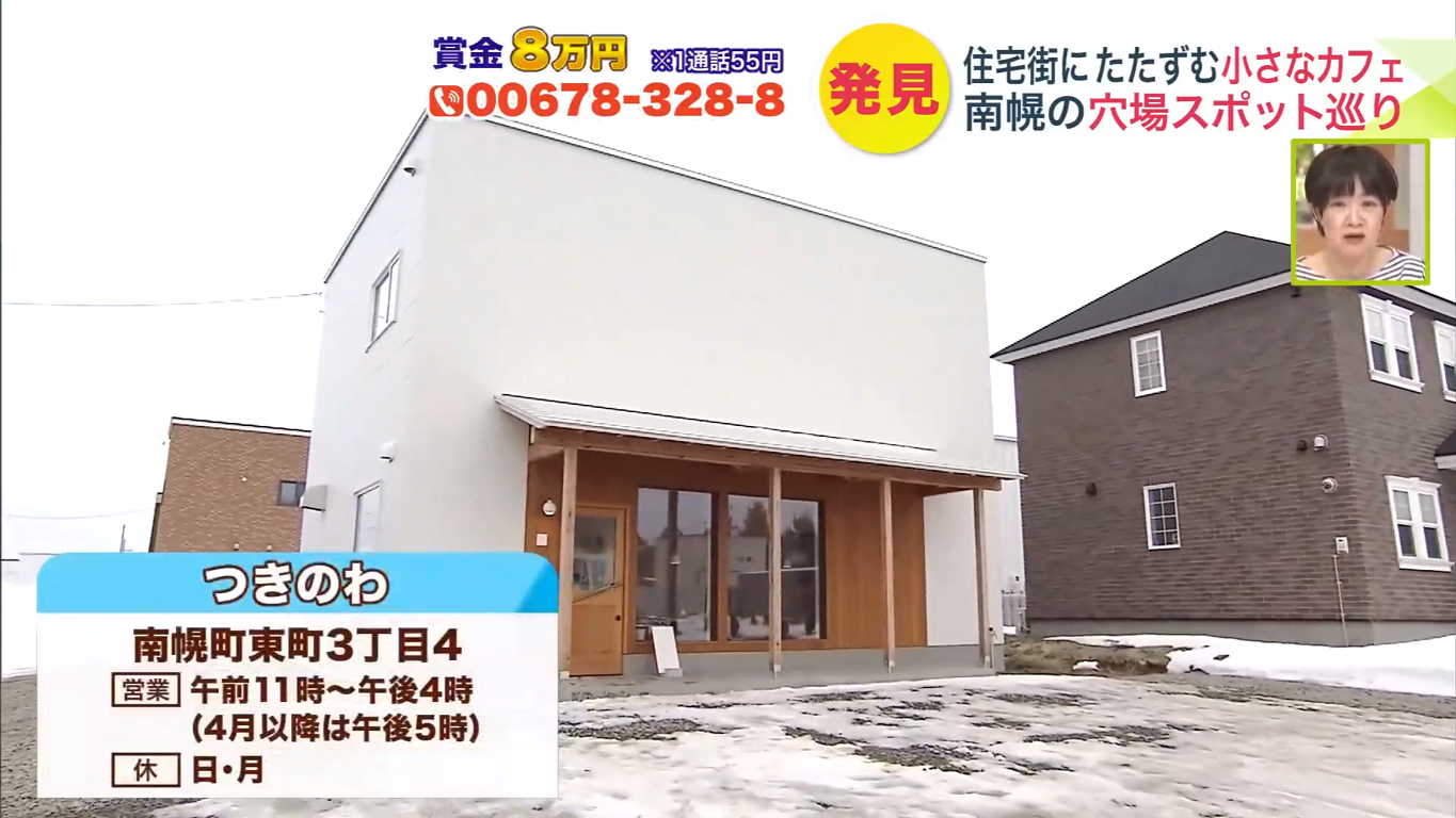 genya.から車で7分。新興住宅街エリア「南幌ニュータウンみどり野」に2025年10月にオープンしたカフェ「つきのわ」へ向かいました。かわいくておしゃれなカフェです。