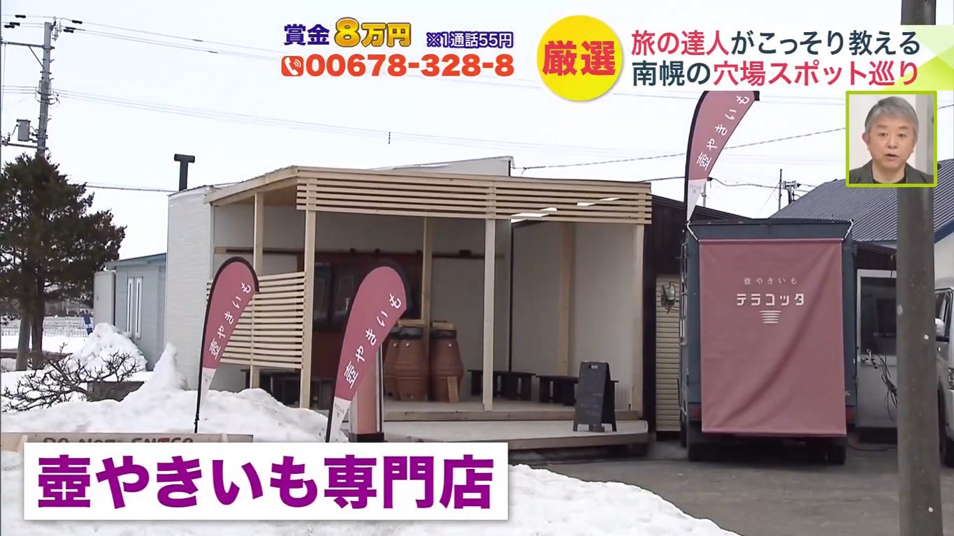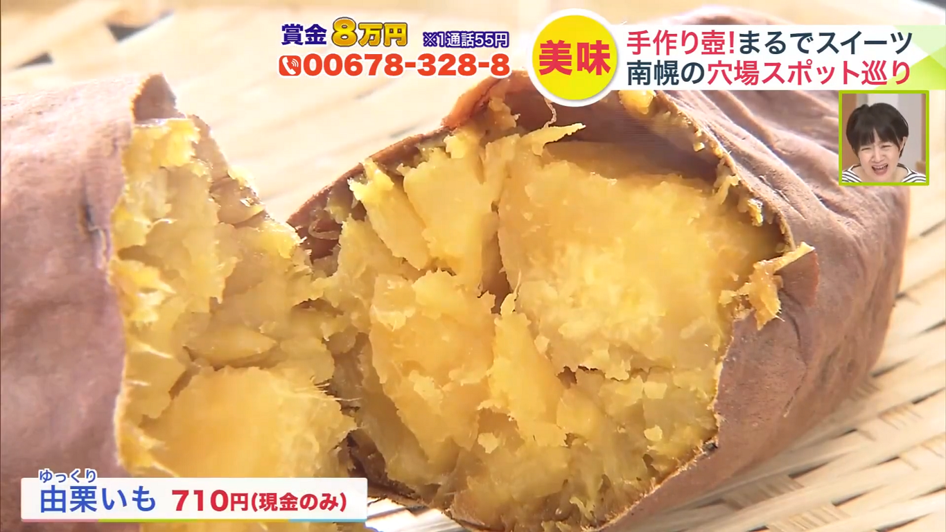 「パッカーン」というかけ声とともに遠藤リポーターがいただいたのが、「由栗(ゆっくり)いも」(710円、現金のみ)。「 わあ〜、すごい湯気!甘ーい!もはやスイーツですね」