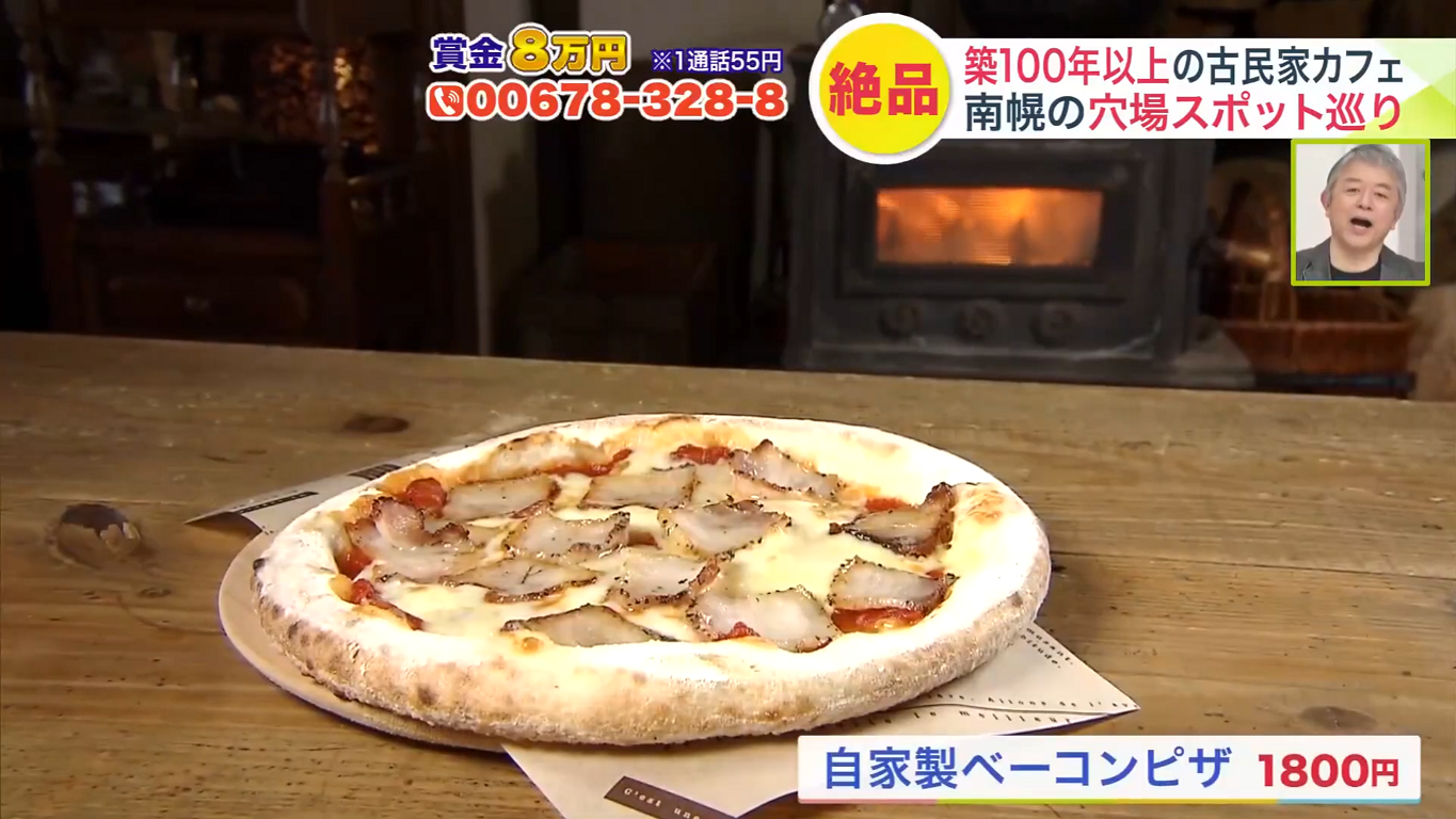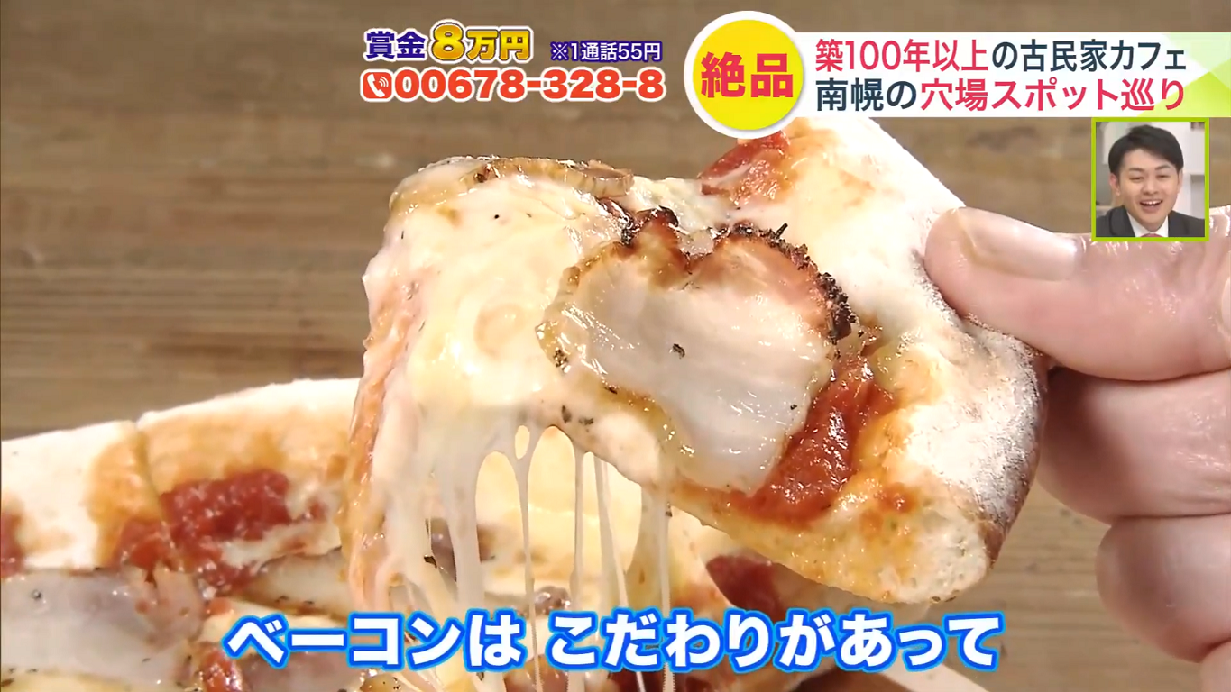 人気メニューは、道産小麦を使った手ごねの生地に、自家製ベーコンとチーズがたっぷり載った「自家製ベーコンピザ」(1800円)。
