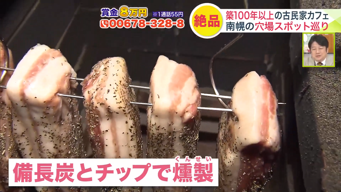 西山さんは「ベーコンにこだわりがあります」ときっぱり。道産豚バラ肉に、西山さんの出身地である九州の海塩を使い、ハーブも練り込んで作っています。備長炭とチップで燻製した香りもたまりません。