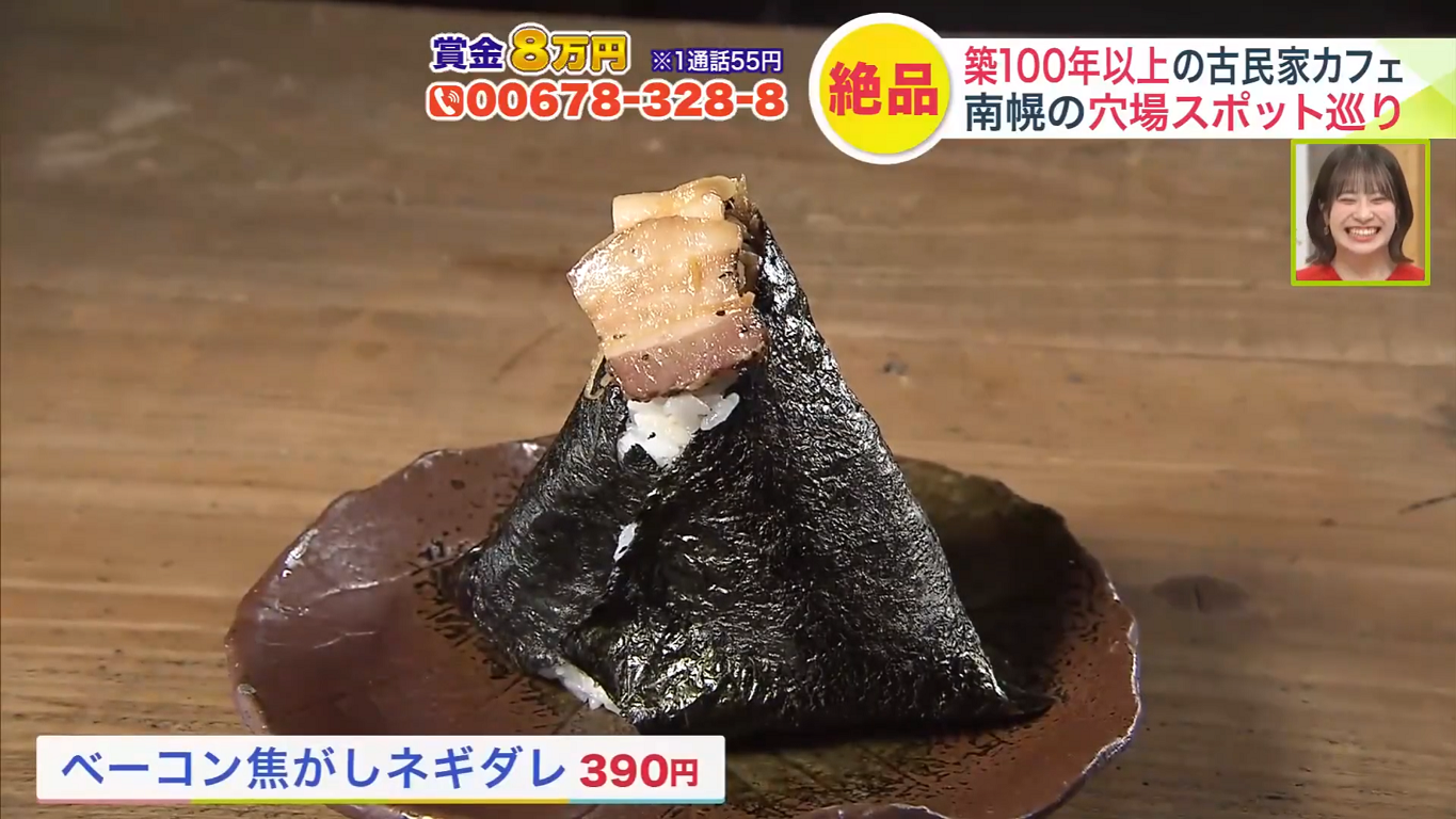 続いていただいたのは、長沼町の特別栽培米を使ったおにぎり「ベーコン焦がしネギダレ」(390円)。