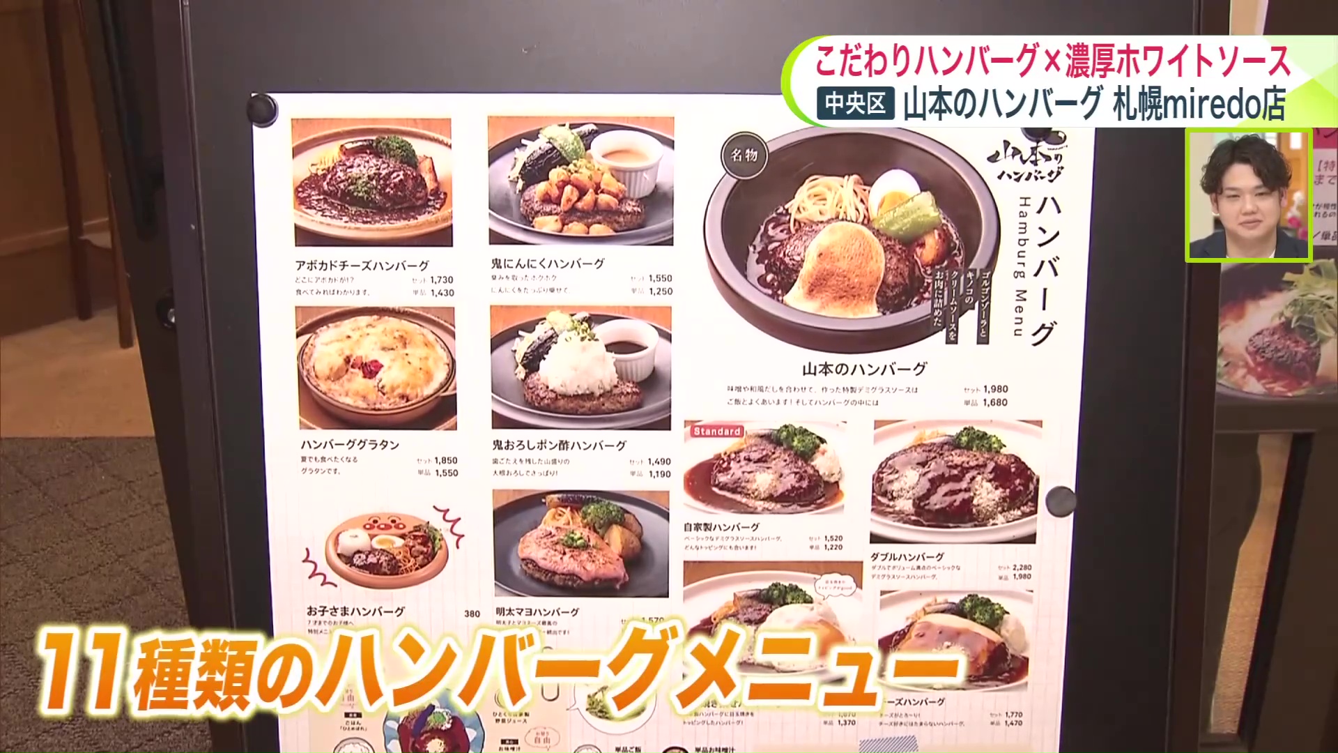 まずは、街中で楽しめるハンバーグの名店「山本のハンバーグ 札幌miredo店」。ハンバーグのメニューだけでこんなにたくさん!
