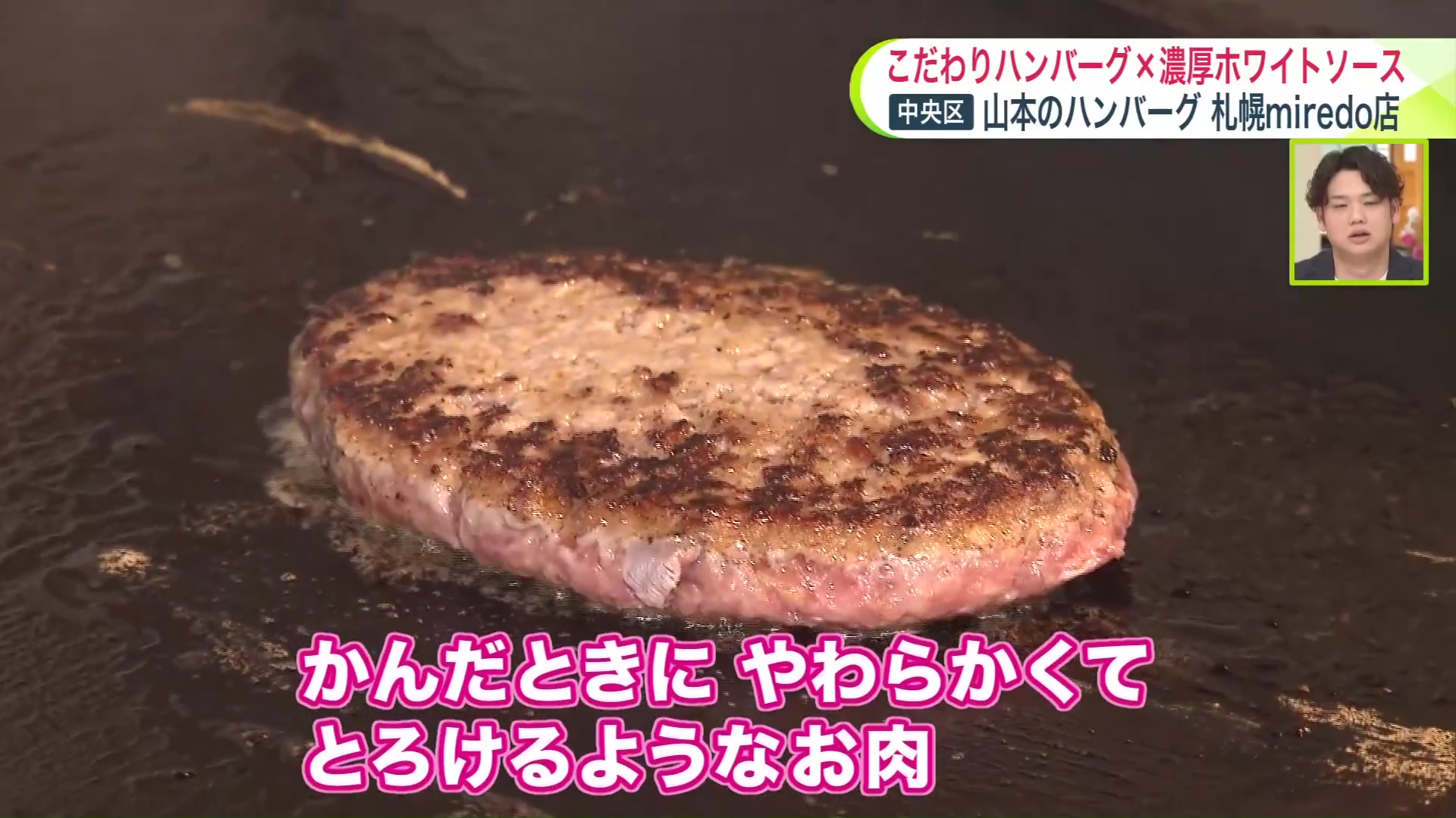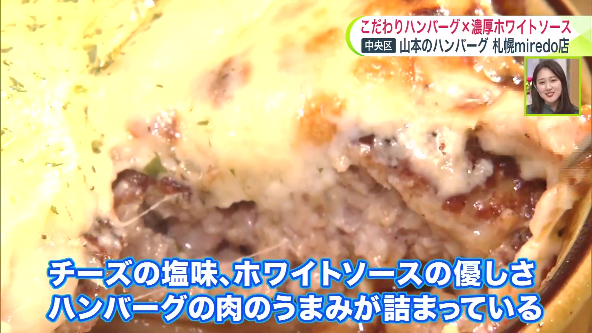 「牛と豚の合い挽き肉で、牛は国産牛を使用。豚は道産ブランド豚“ゆめの大地”を使っていて脂に甘みがあって、きめ細やかな肉質が特徴。かんだときにやわらかくてとろけるようなお肉」と、山本のハンバーグ札幌miredo店の櫻井直子さん。