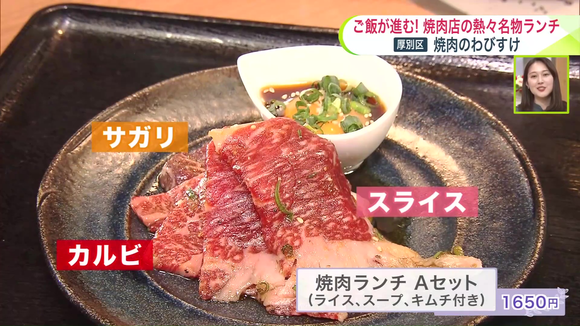 「焼肉ランチ Aセット(ライス、スープ、キムチ付き)」は1650円。