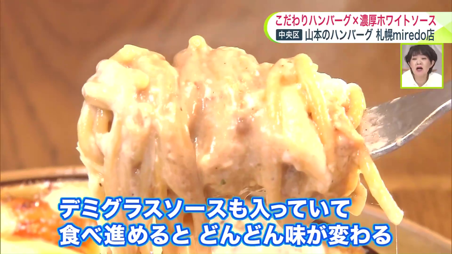 「デミグラスソースも入っているので、食べ進めるとどんどん味も変わって、どこから食べてもおいしい」と江上アナ。