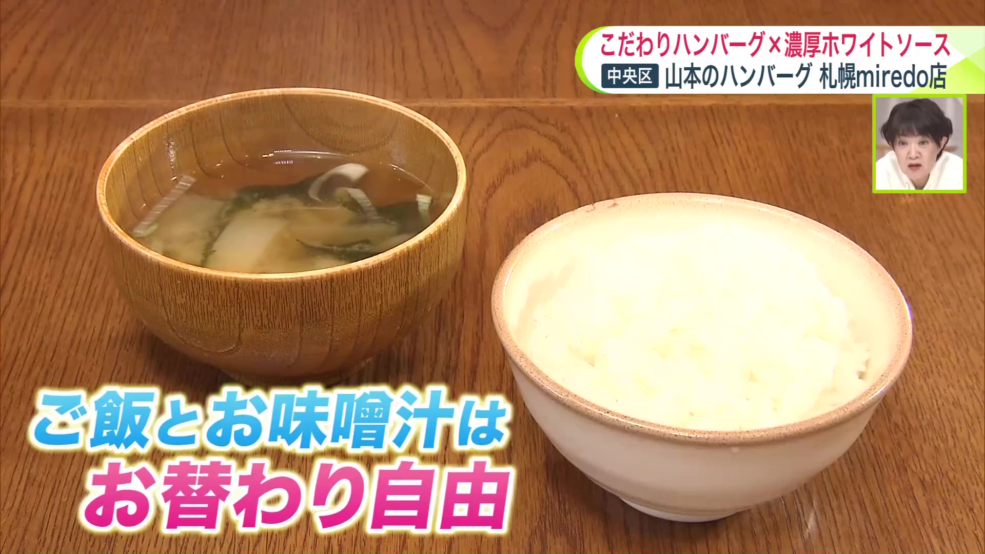 鮮度と品質にこだわった釜炊きの宮城県産ひとめぼれとお味噌汁は、おかわり自由!