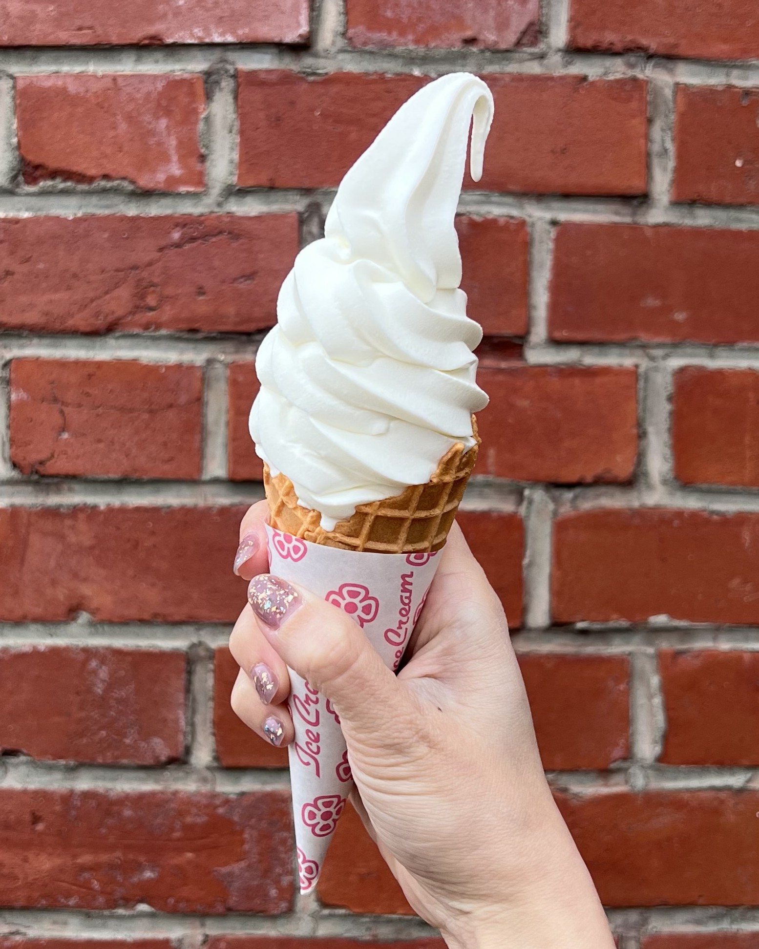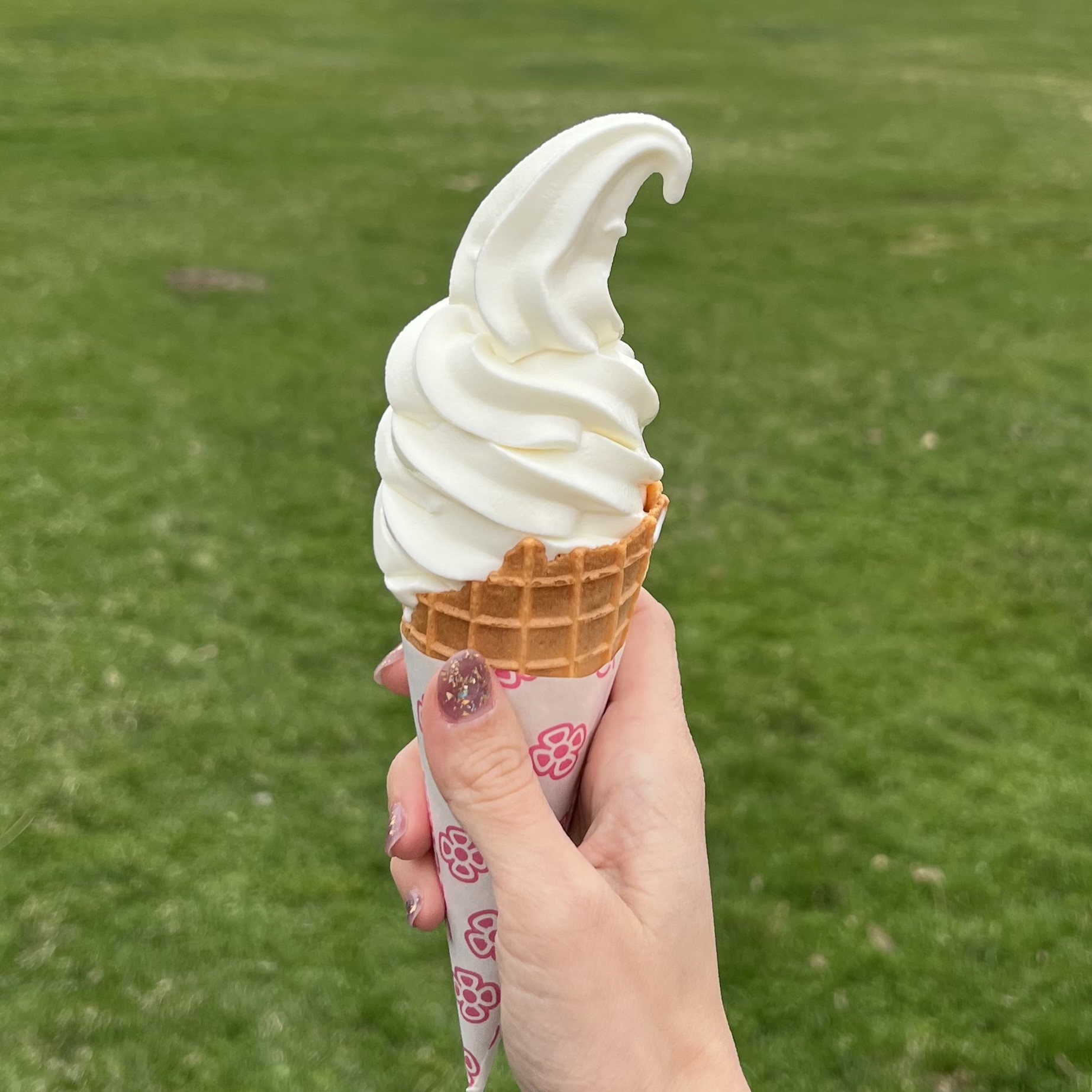 八紘学園の名物といえば、学園内で育てられた牛の生乳で作る『ツキサップソフトクリーム 400円 (税込)』。