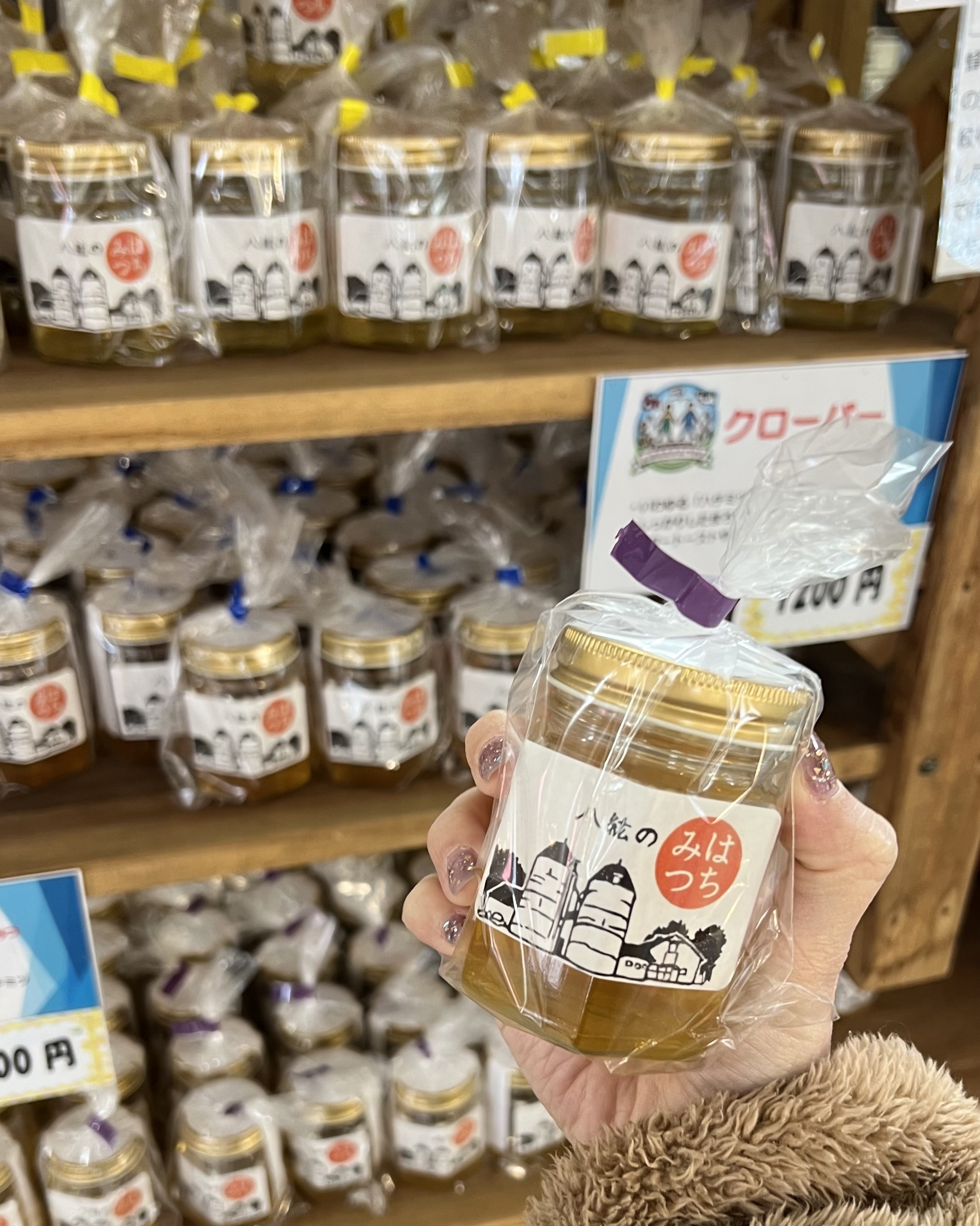 学園内で養蜂しており、アカシア、クローバー、百花蜜、ラベンダーの4種類が並びます。
