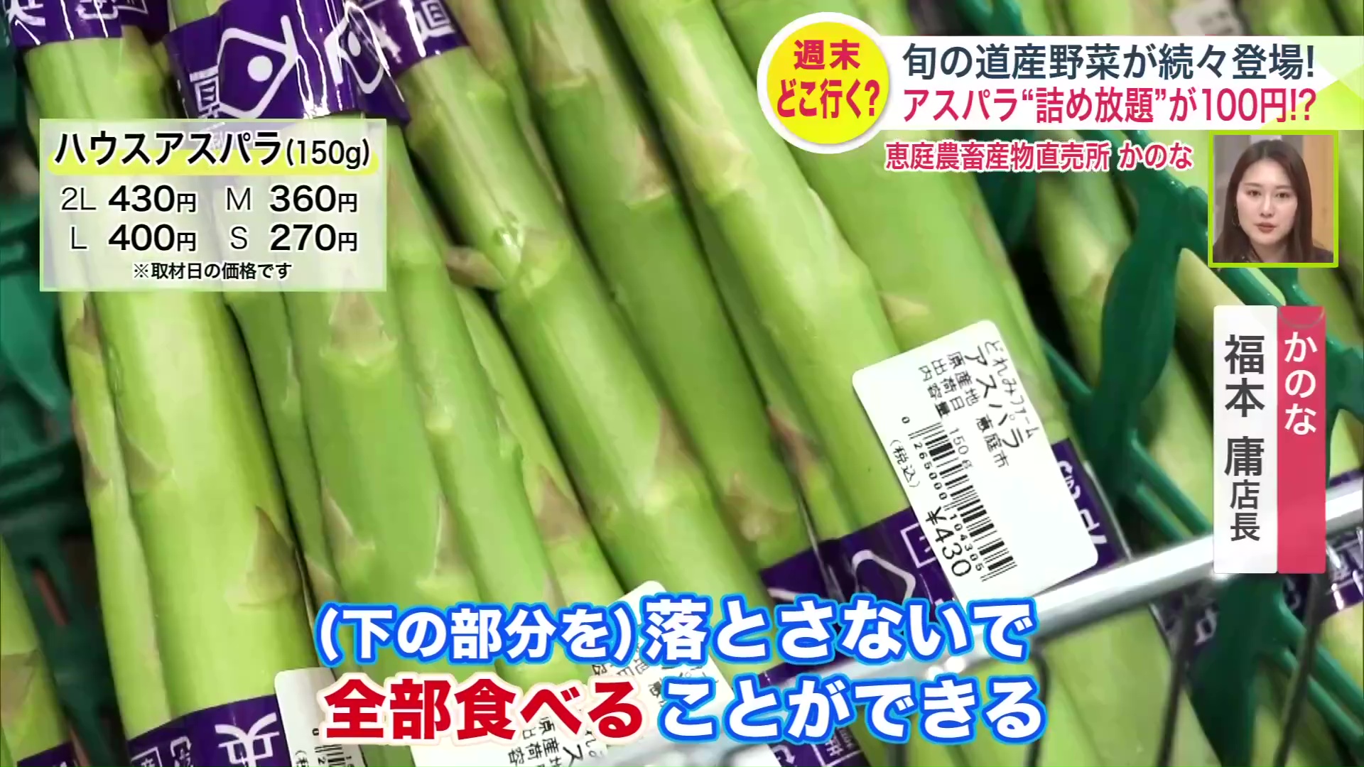 「ハウスアスパラは、下の部分までやわらかいので(下の部分を)落とさないで全部食べることができる」と福本店長。