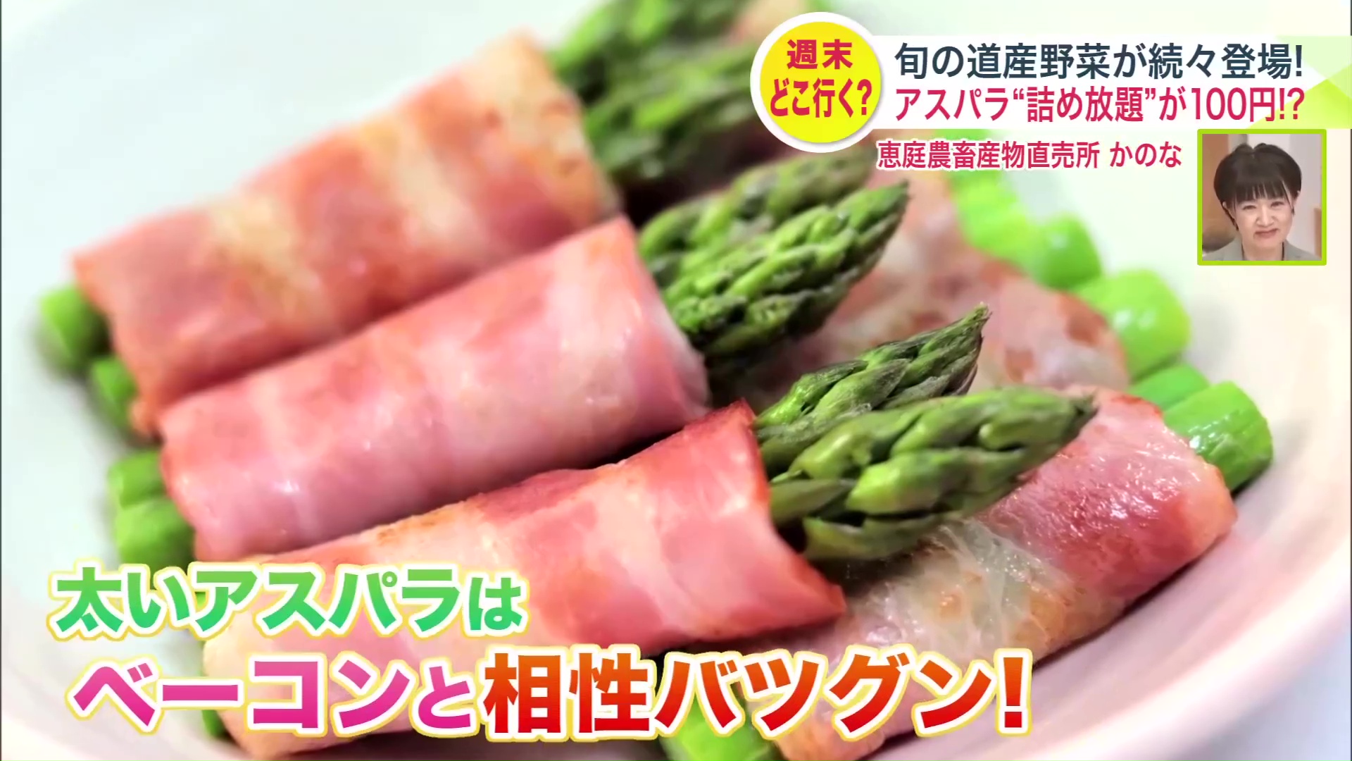 太いものはベーコンとも相性バツグン。「ベーコンアスパラにすると、食感も良くてすごくおいしい」ということですよ。