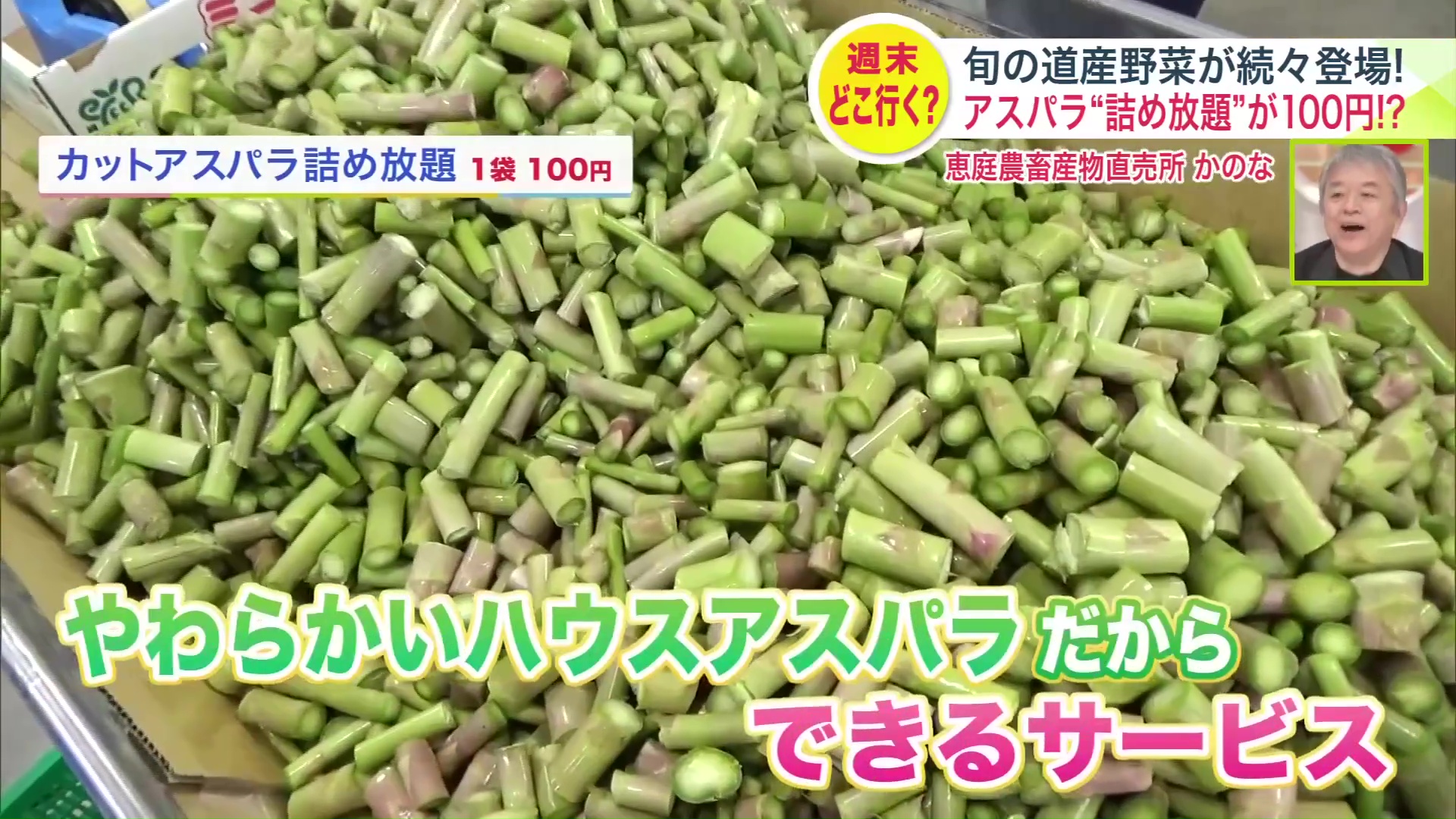 ハウスアスパラが主体のいましか開催していません。量に限りがあるので、開店後すぐに売り切れてしまうこともあるそうですよ。