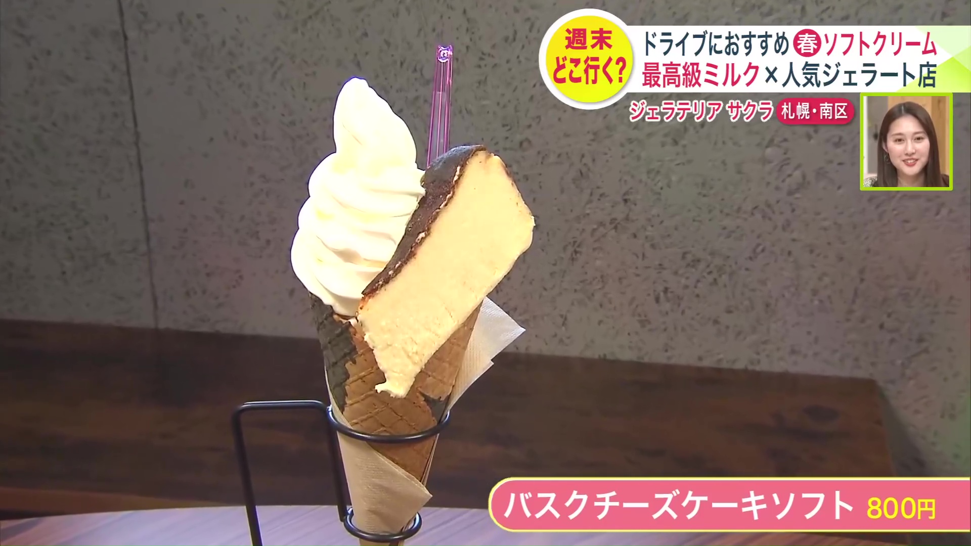 「バスクチーズケーキソフト 800円」。