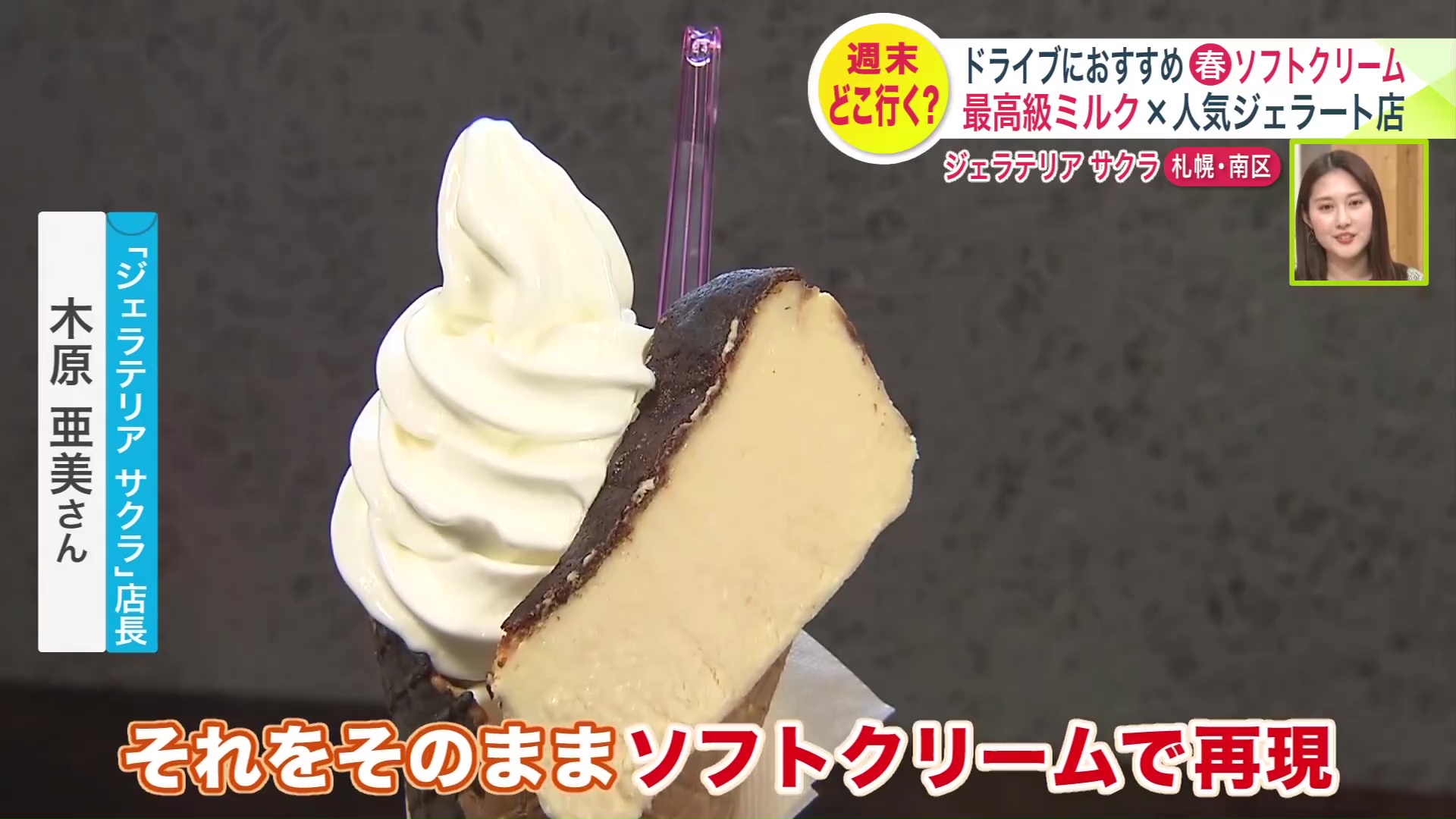 ジェラテリア サクラ店長の木原亜美さんは「使っている宇野牧場の牛乳は味わいがすごく濃厚だけど、口当たりと後味がスッキリさわやかなのが特徴。それをそのままソフトクリームで再現している」と話します。