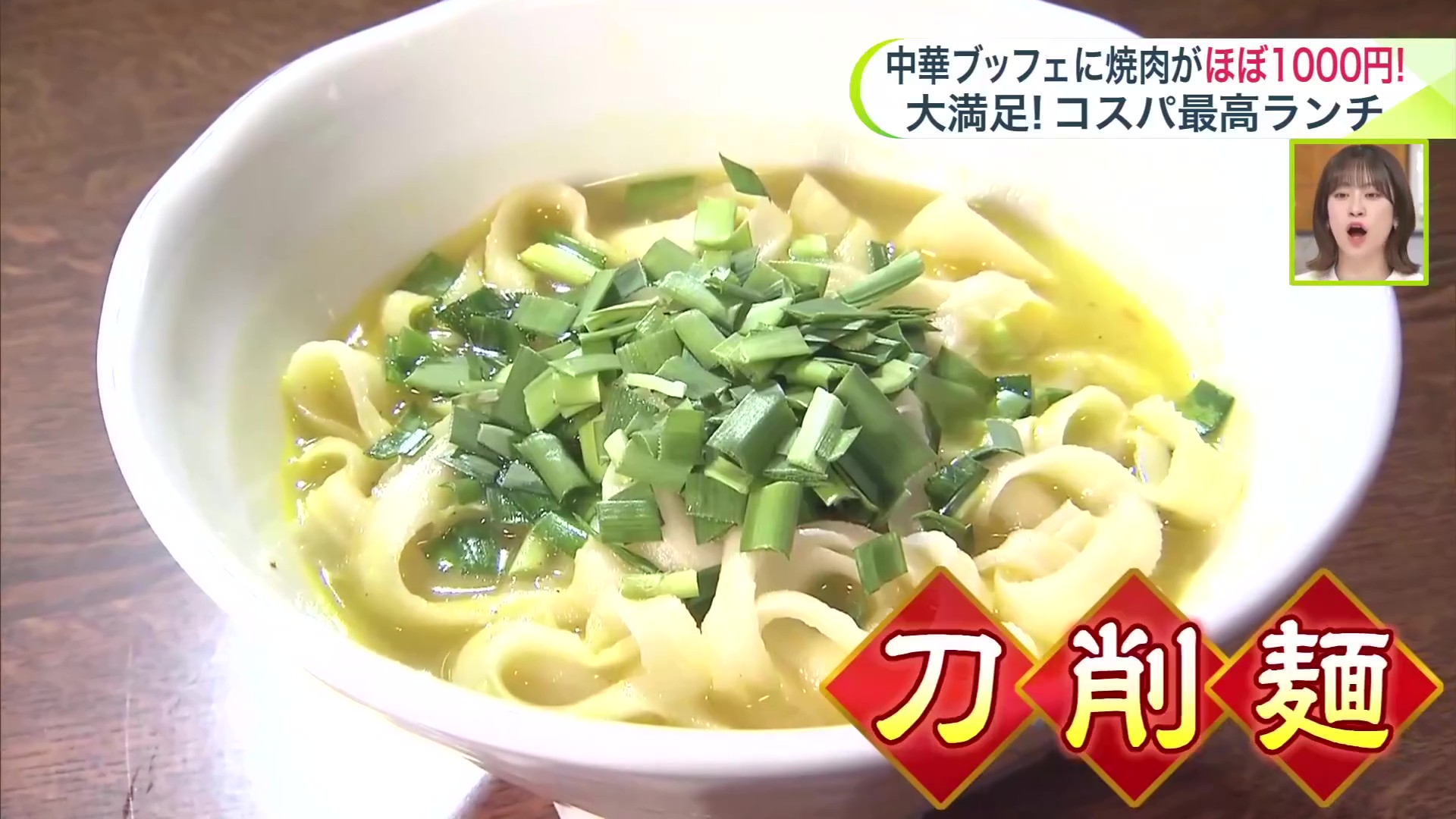 刀削麺のような一品料理を注文するだけで、10種類ほどある『食べ放題ビュッフェ』が楽しめるんだそうですよ。