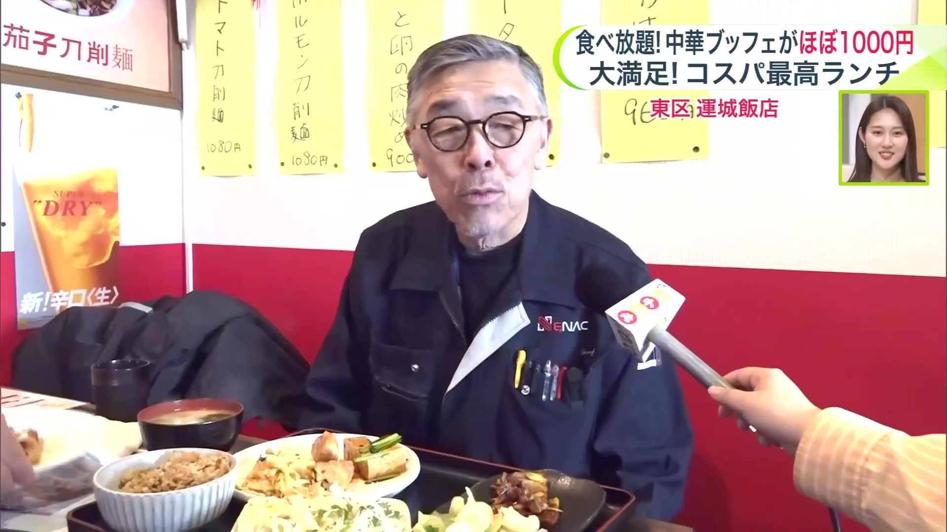 「 運城飯店は何を食べても美味しい。見た目で美味しそうなのを取ってきた」と話すこちらの男性。