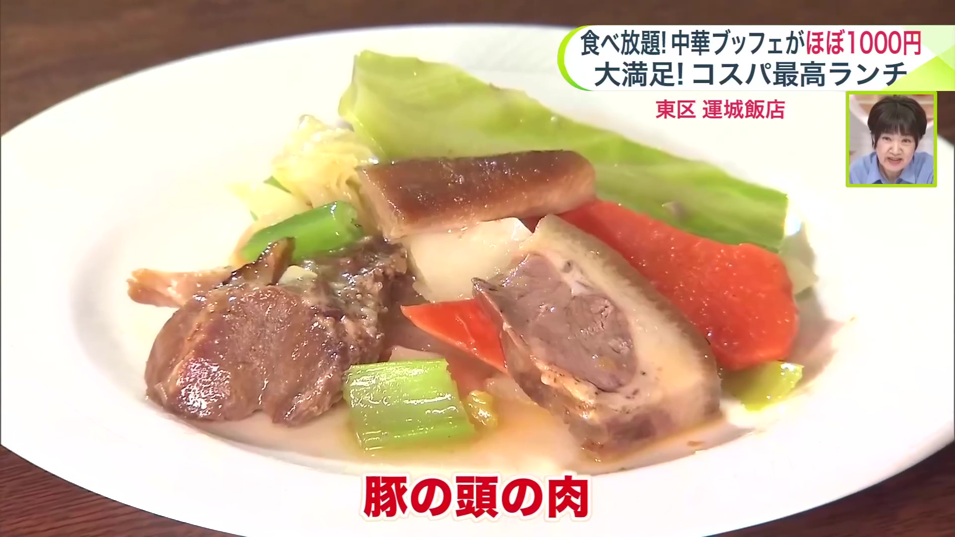 取材日は、醤油ベースで中国の香辛料を使ってじっくり煮込んだという豚の頭の肉料理も食べ放題でした。