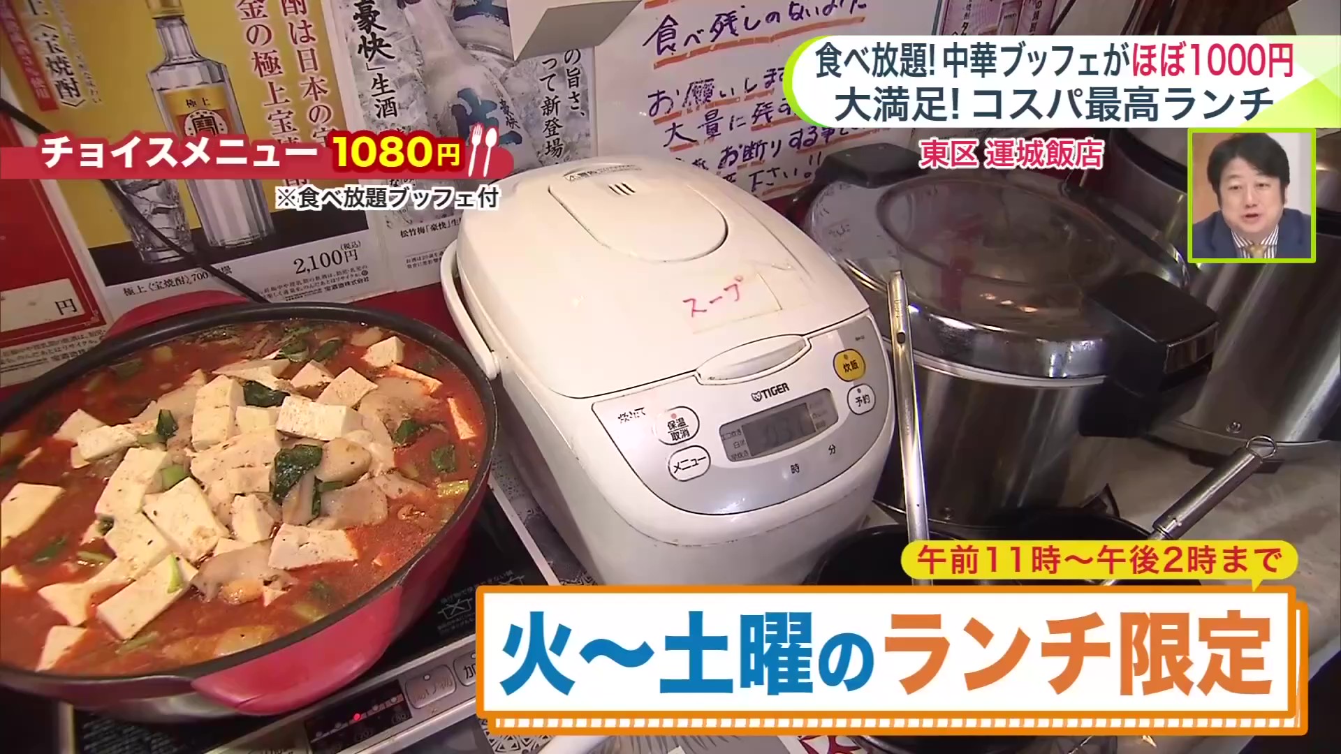 1080円で食べられる中華ビュッフェは、火曜日から土曜日のランチ限定で楽しむことができます。