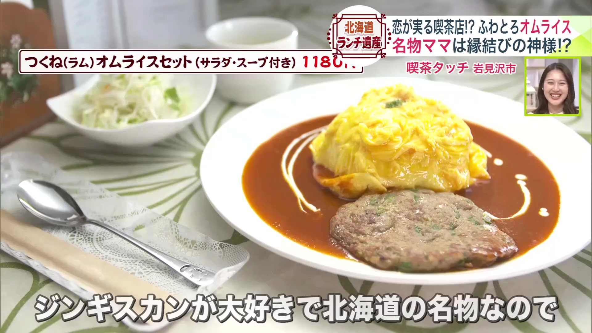 ラム肉好きの眞由美さんが、タッチのオープンに合わせて考案したという「つくね(ラム)オムライスセット(サラダ・スープ付き)1180円(税込)」が食べられます。