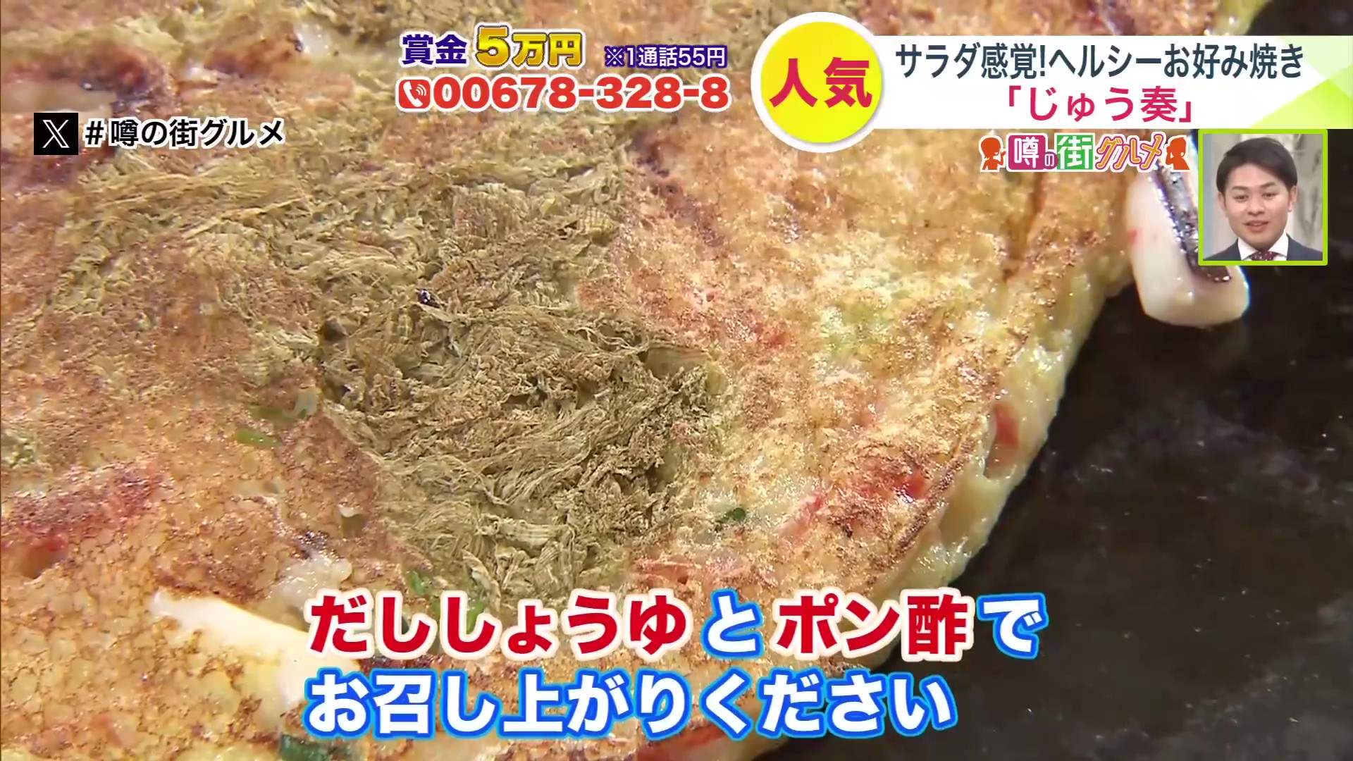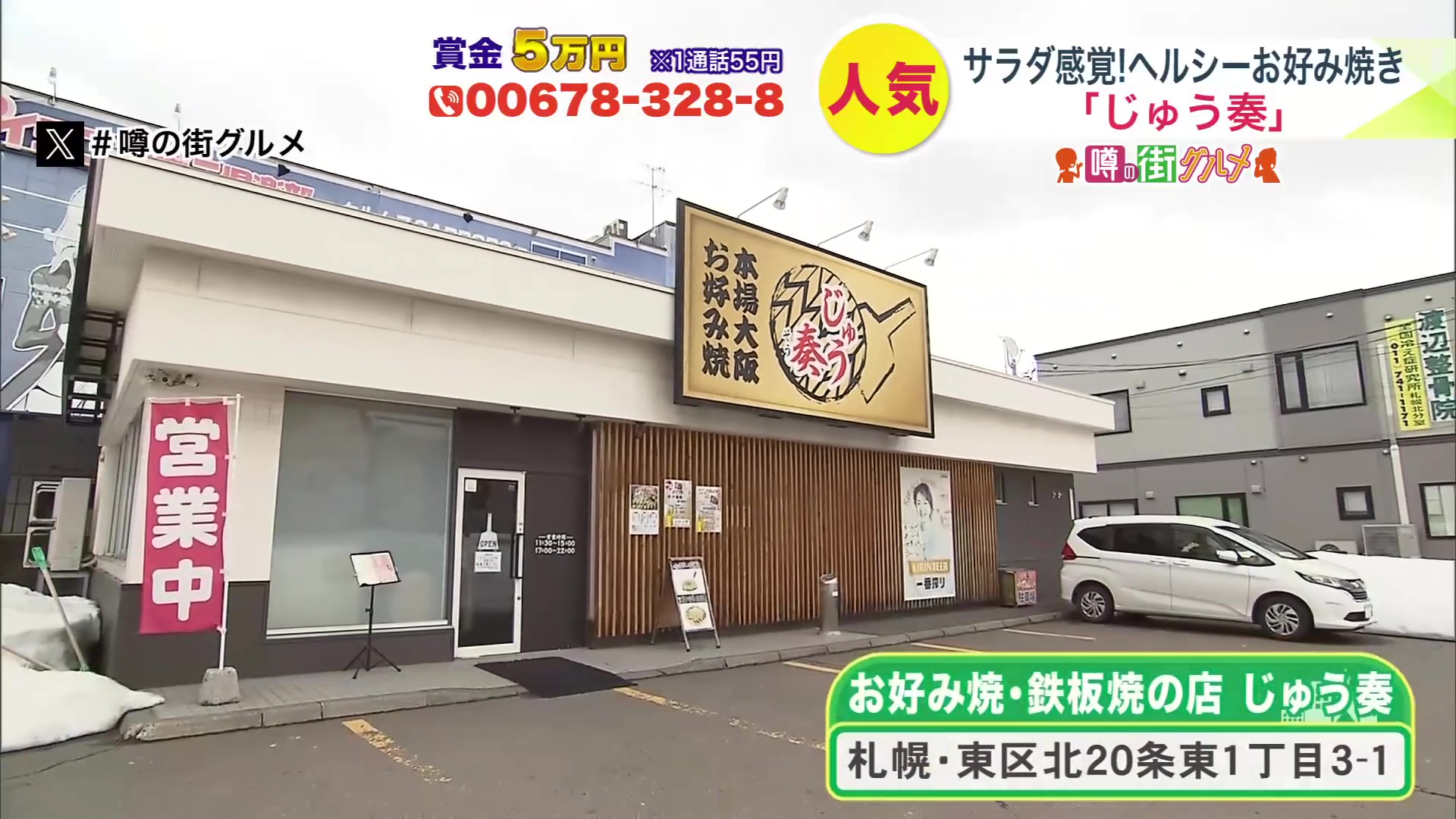 地下鉄南北線 北18条駅から徒歩12分の「お好み焼き・鉄板焼きの店 じゅう奏(じゅうそう)」は、本場・大阪仕込みリーズナブルなお店。