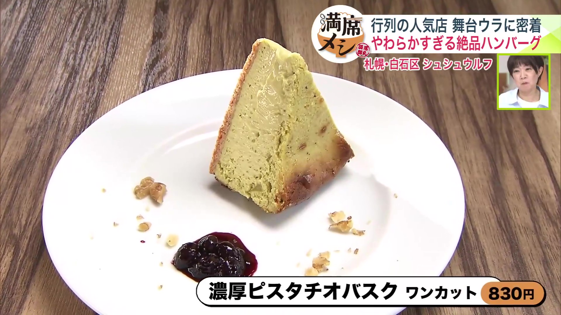 シメに味わいたいのが、甘さ控えめの「濃厚ピスタチオバスク ワンカット 830円(税込)」。