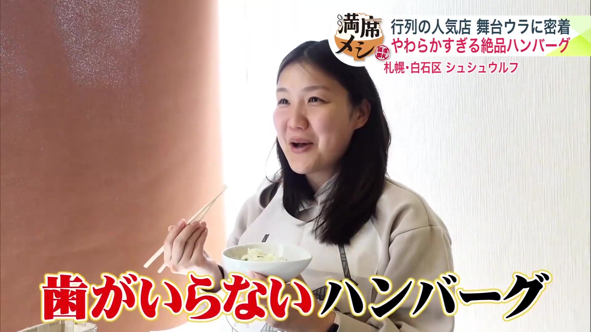 こちらの女性は「めちゃめちゃ柔らかい!歯がいらないハンバーグですね」と驚きます。