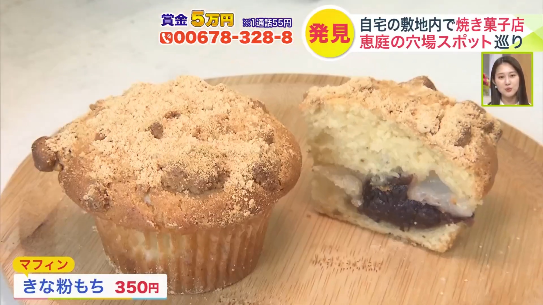その中の1つ「マフィン きな粉もち」(350円)はバターを使わず、米油で仕上げているため、軽い食感が特徴。しっとりと焼き上がっています。