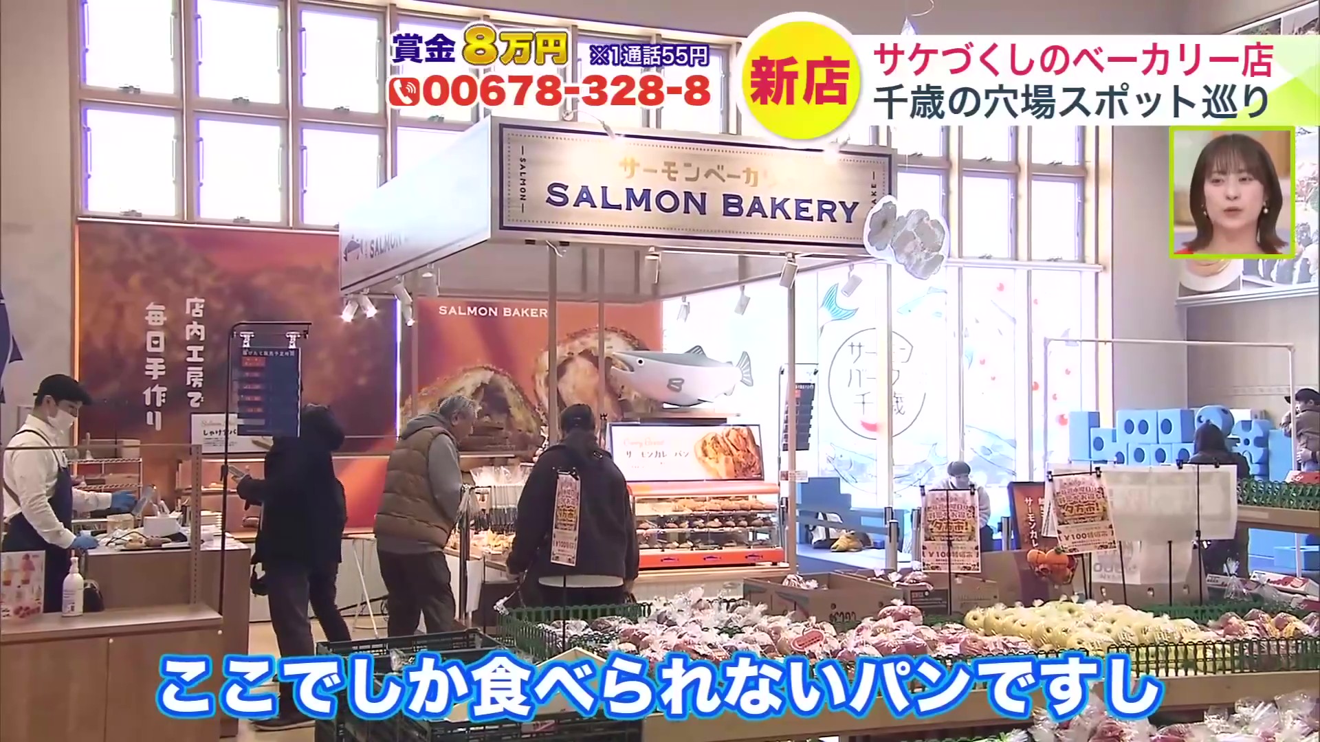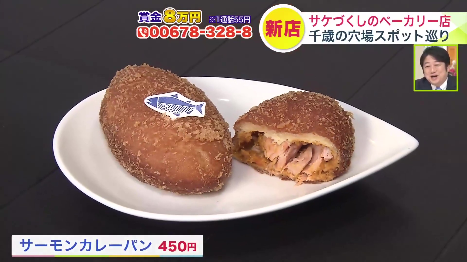 その名も「サーモンベーカリー」ということで、サーモンカレーパンにサーモンちゃんちゃん塩パン、鮭食パンなど、鮭づくしのパンが並びます。