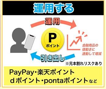 元本割れのリスクがあるものの、PayPayだけでなく楽天ポイント、dポイント、pontaポイントなど多くのポイントで「運用」ができます。