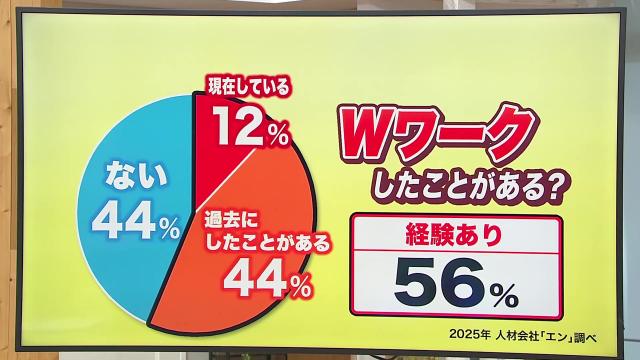 皆さんは、ダブルワークしたことがありますか?人材会社「エン」が1500人を対象にしたアンケートによると、「現在している」または「過去にしたことがある」人が全部で56%と半数を超えています。いま、かけ持ちや副業などのダブルワークをしている人が増えています。札幌の実情を調査してきましたよ。