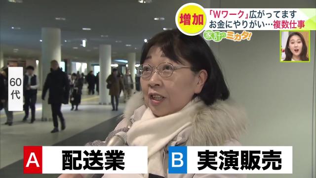 60代の女性は「ちょっとお金欲しいな」と思って「配送業」と「食料品の試食販売」をかけ持ち。