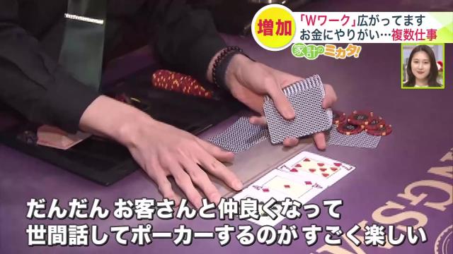 「最初はディーラーをしてること自体が楽しかった。だんだんお客さんと仲良くなって世間話をしながらポーカーをするのがすごく楽しい。お金というよりは、趣味が仕事で働かせてもらっている感じ」と話します。