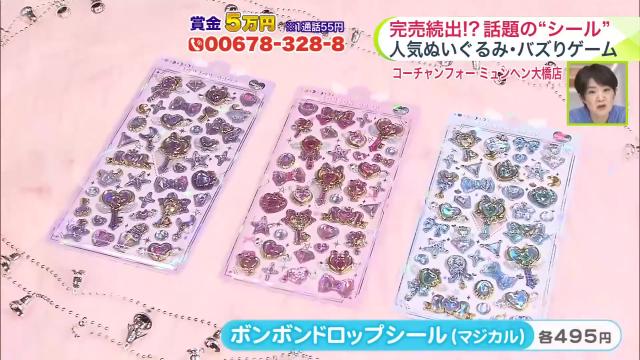なかでも「ボンボンドロップシール」という立体的なシールが大人気。コーチャンフォーでも並べた瞬間即完売になる完売必至の商品なんです。
