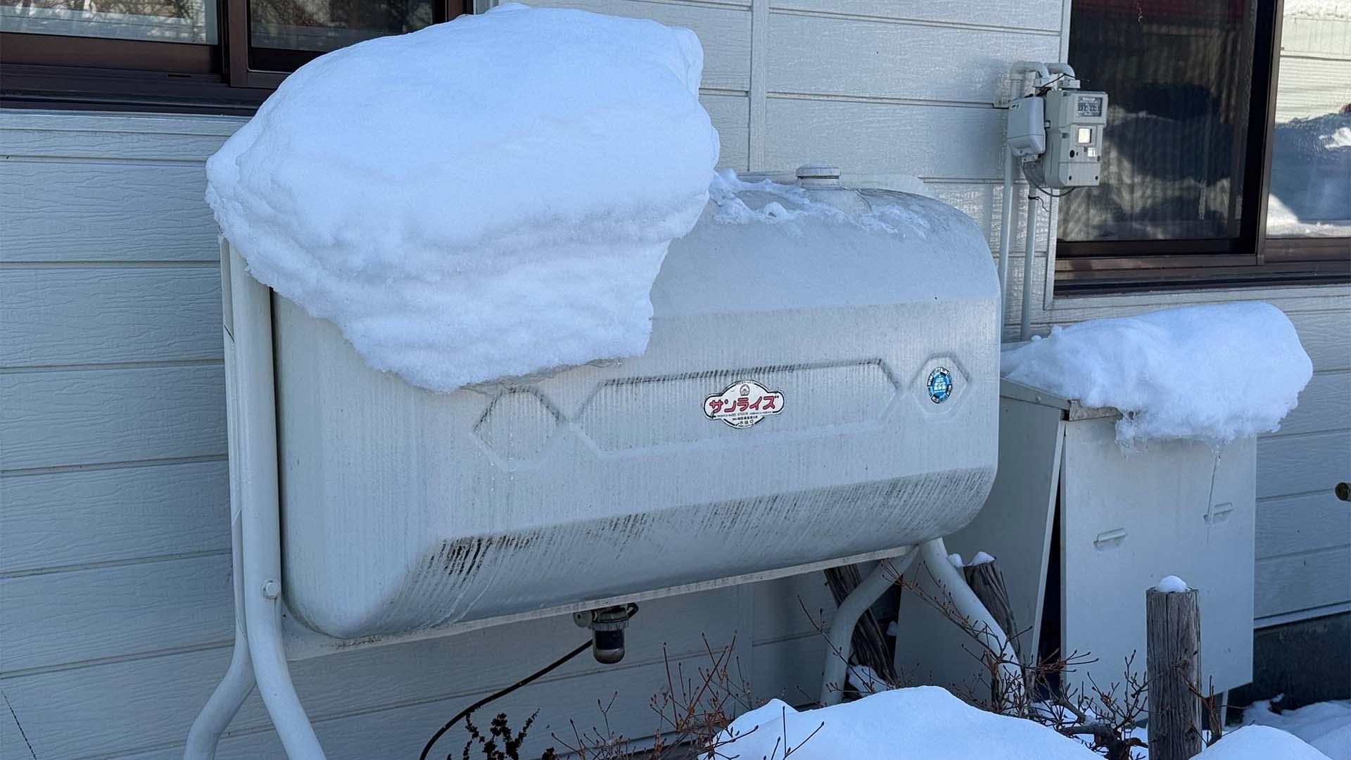 自宅の外にある巨大な石油タンク――という風景は、雪国に暮らす人たちにとっては当然ですが、本州の人にとっては、そもそもあれが何か分からないのだとか。タコのような丸形もありますが、4本の脚がついた長方形タイプが主流です。容量は490リットルが多く、1カ月間の暖房や給湯を支えています。