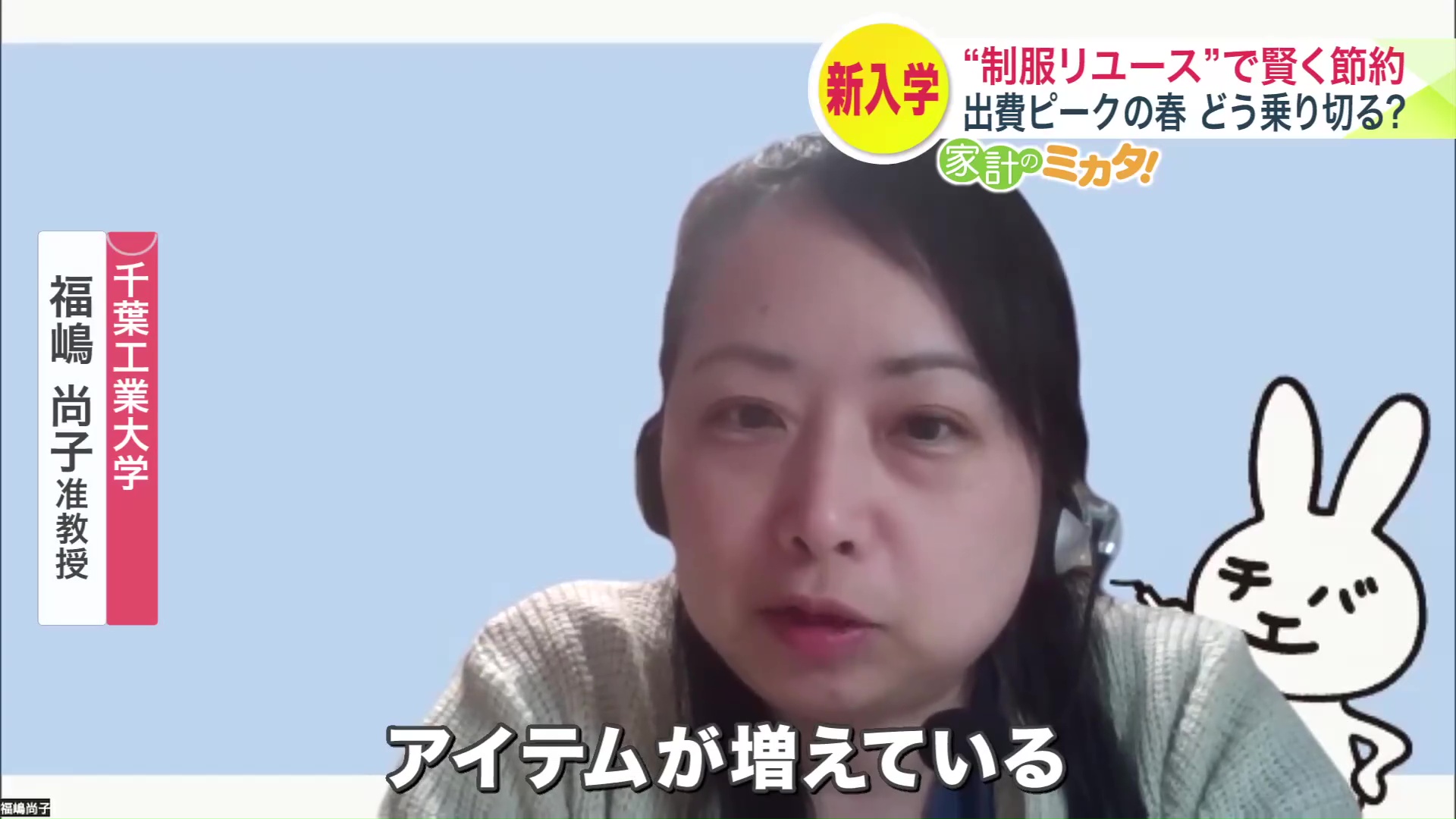 千葉工業大学の福嶋尚子准教授は「アイテム数が増えている。制服といってもジャケットとスラックスとスカートがあればいいわけでなく、ワイシャツやベストやセーター、もしかしたら靴下やベルトなど、増やそうと思えばいくらでも学校指定の制服は増やしていける。買うものが増えれば、自然と負担額が上がっていく」と話します。