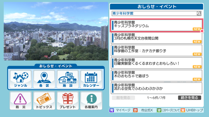 『札幌市からのおしらせ』を選択すると、イベントや講座など様々なジャンルの催しについて詳しい情報がゲットできます。