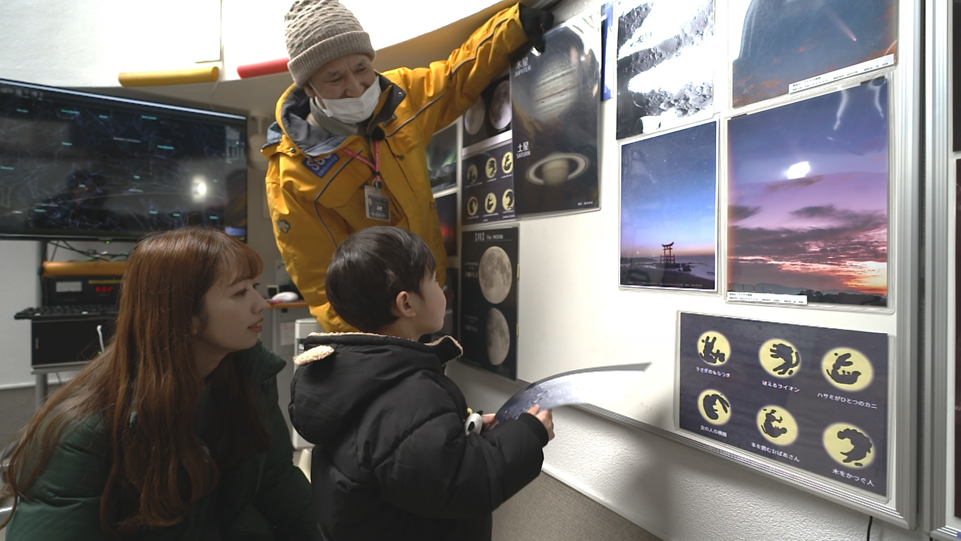 月に興味がある息子は、壁に貼られている展示にも興味津々。