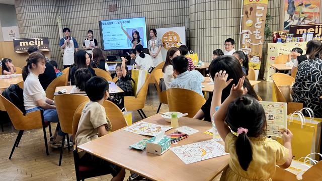 明治おいしい牛乳を使用したメニューを、親子で楽しく食べて、食を楽しく学べる「みんテレこども食堂」。