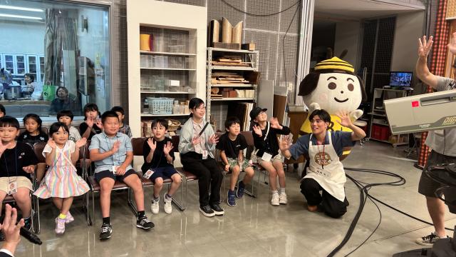 日が暮れるころに集まり始めた子どもたち。はじめは少し緊張気味でしたが、司会のアナウンサーが会場を盛り上げ、だんだんと笑顔がほころび、声を出して質問に答える姿が見られました。