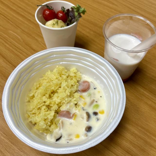 メインメニューの“カレーピラフのクリームソースがけ”は、カレーの香りで食欲をそそり、牛乳でまろやかにするなど、子どもたちが食べやすいように!と考案されました。
