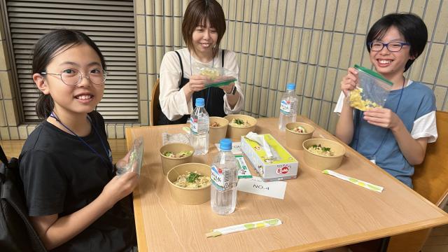 明治から「明治おいしい牛乳」を提供いただき、牛乳を使用したメニューを食べて親子で学びを深めました。