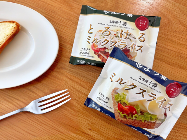 とろけるタイプの「よつ葉 北海道十勝 とろけるミルクスライス」も展開されていて、トーストやホットサンドに合わせても楽しめます。