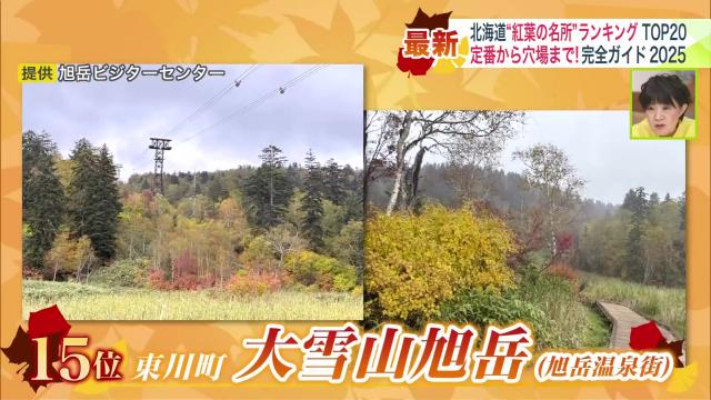 第15位にも、旭岳の玄関口である温泉街がランクイン。姿見の池付近と併せて訪れたいスポットです。