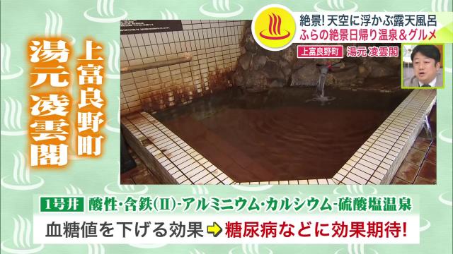 内湯にある透明な湯は、酸性・含鉄(Ⅱ)ーアルミニウム・カルシウムー硫酸塩温泉で、血糖値を下げる効果が期待できるんだとか。