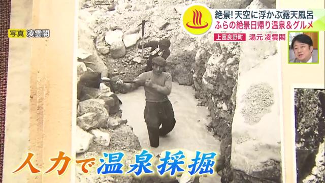 旧噴火口に温泉を発見した創業者の会田さんが人力で採掘し、苦労の末に温泉宿を開いたという逸話が残っています。
