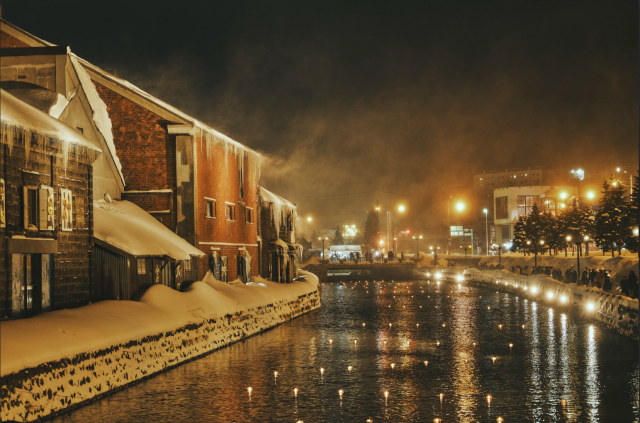 冬の小樽は夕方以降が特に見どころで、ガス灯が灯る時間帯には街全体が静かに輝くような雰囲気に。