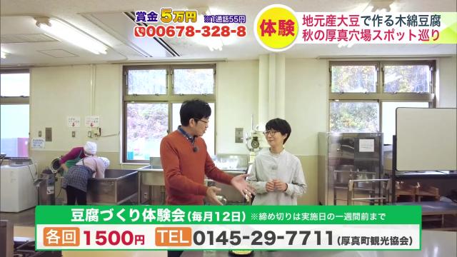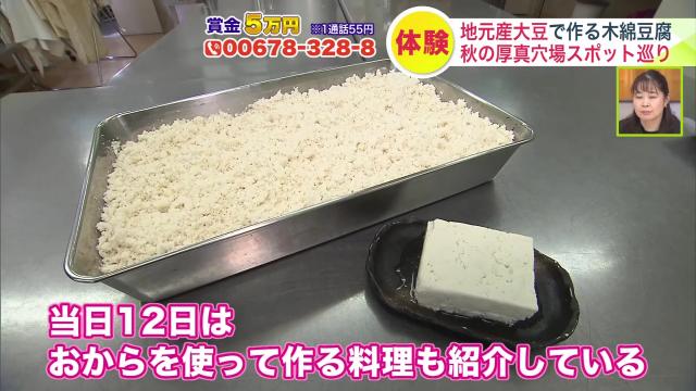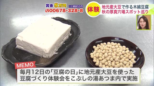 厚真町でとれる大豆を使って作る豆腐づくりの体験会を、毎月12日に行っているんですって。