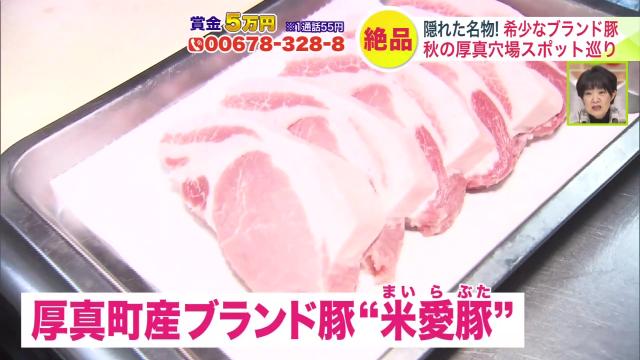 札幌中心部から約80キロ、広大な田園風景が広がる厚真町。お米とハスカップが名産で、ジンギスカンも有名です。実は、特産のジンギスカン以外にも厚真のある特産品を食べて育ったブランド豚もあるんです。厚真町出身の旅の達人・松本紀子さんに希少なブランド豚を味わえるお店と、毎月行われている豆腐づくりの体験会を紹介してもらいましたよ。