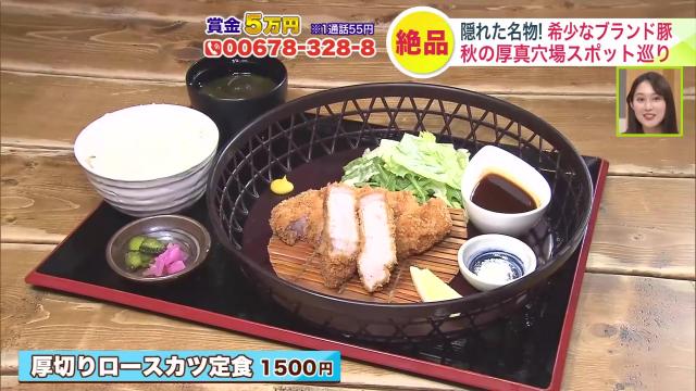 ランチメニューで人気なのが、脂身の甘さがしっかりと味わえるという米愛豚のロースをぜいたくに厚切りにした定食「厚切りロースカツ定食 1500円」です。